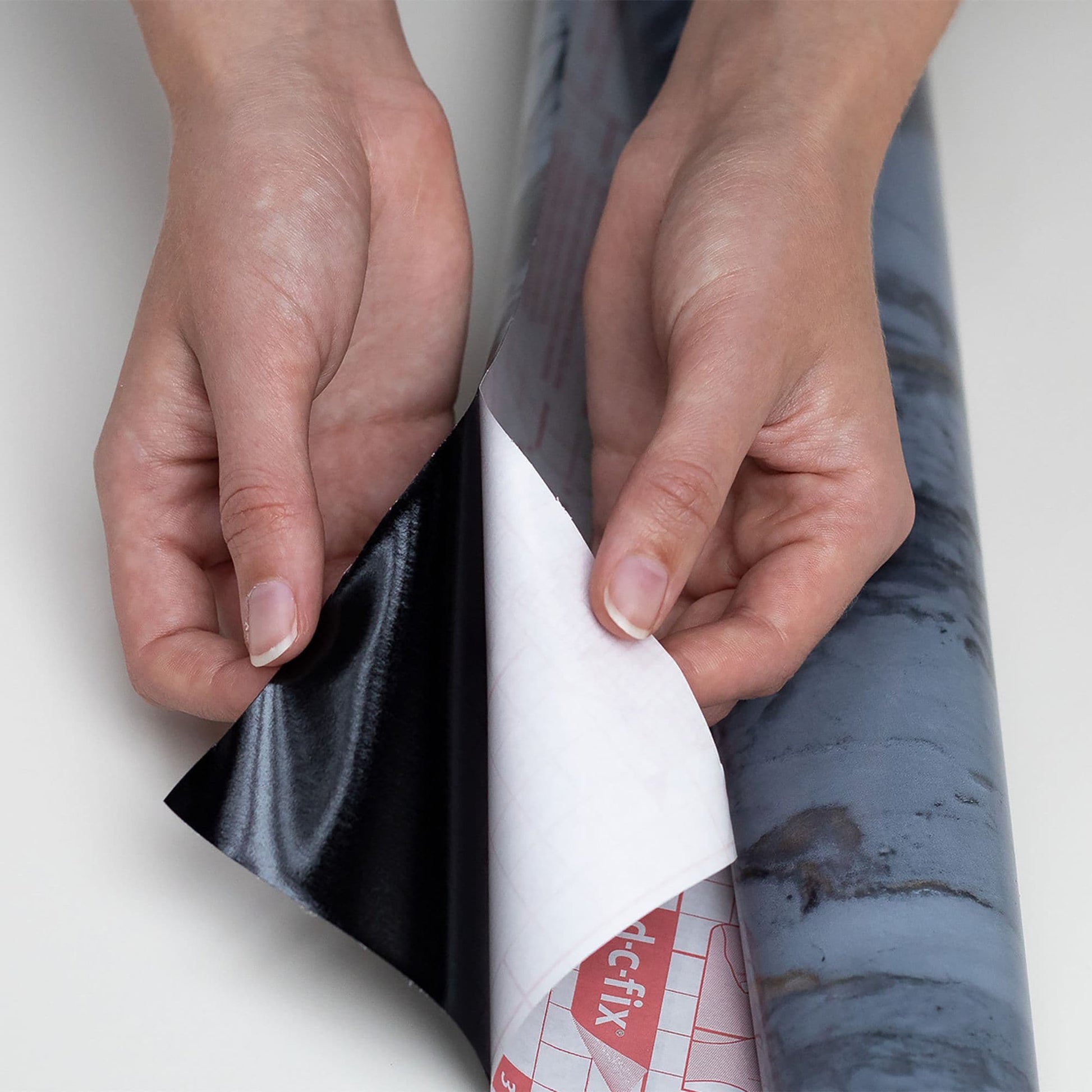 45cm Romeo Gold Blue Marble Sticky Vinyl Fablon (200-3248) Cut to size from 1m to 15m