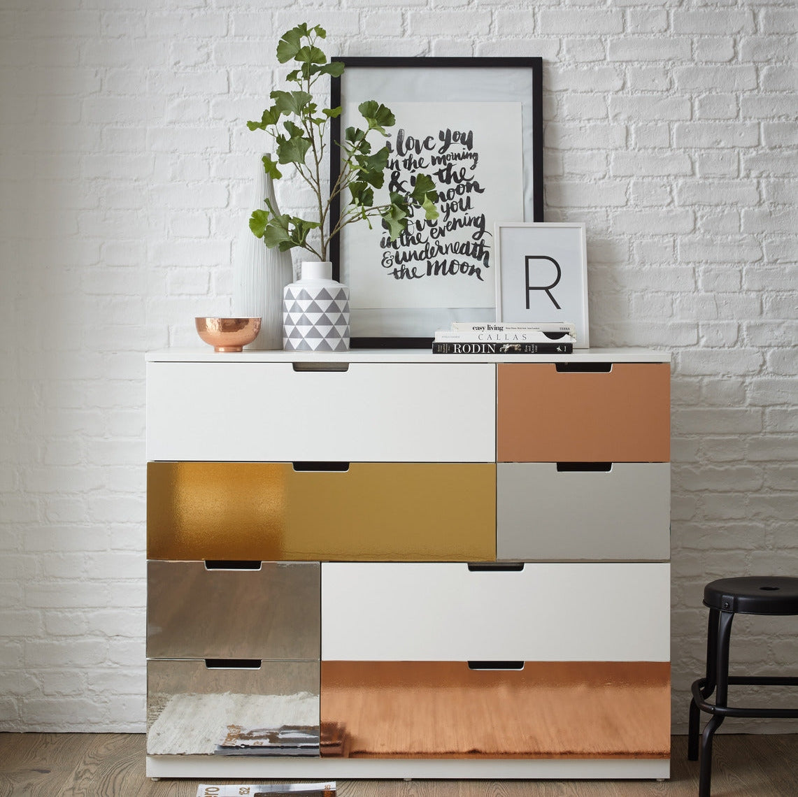 This is a d-c-fix/Alkor product. It is easy to use and widely used by professional designers. You probably see it every day – in shops, film sets or your neighbour’s kitchen refurbishment.